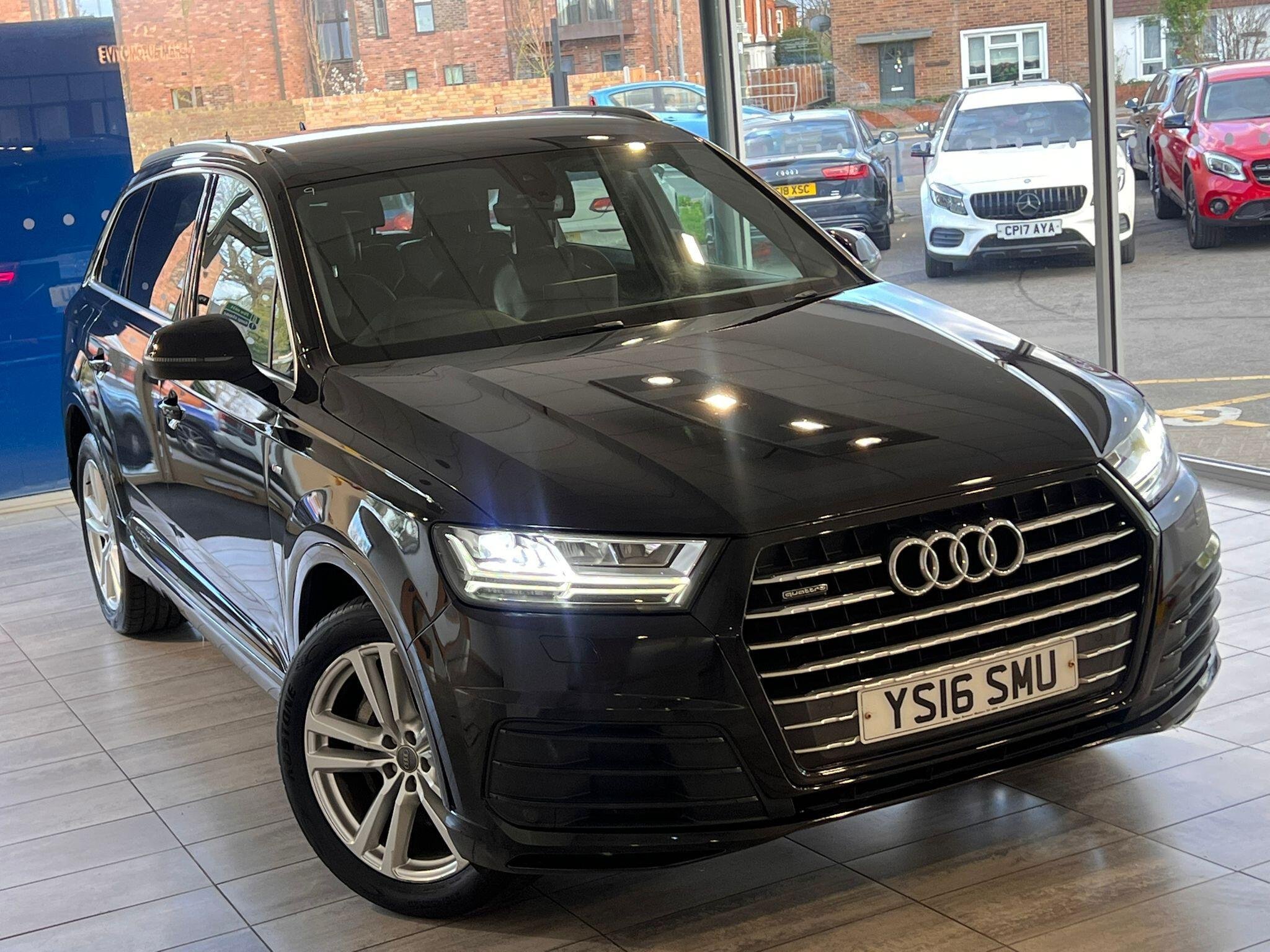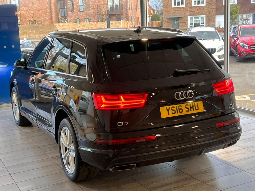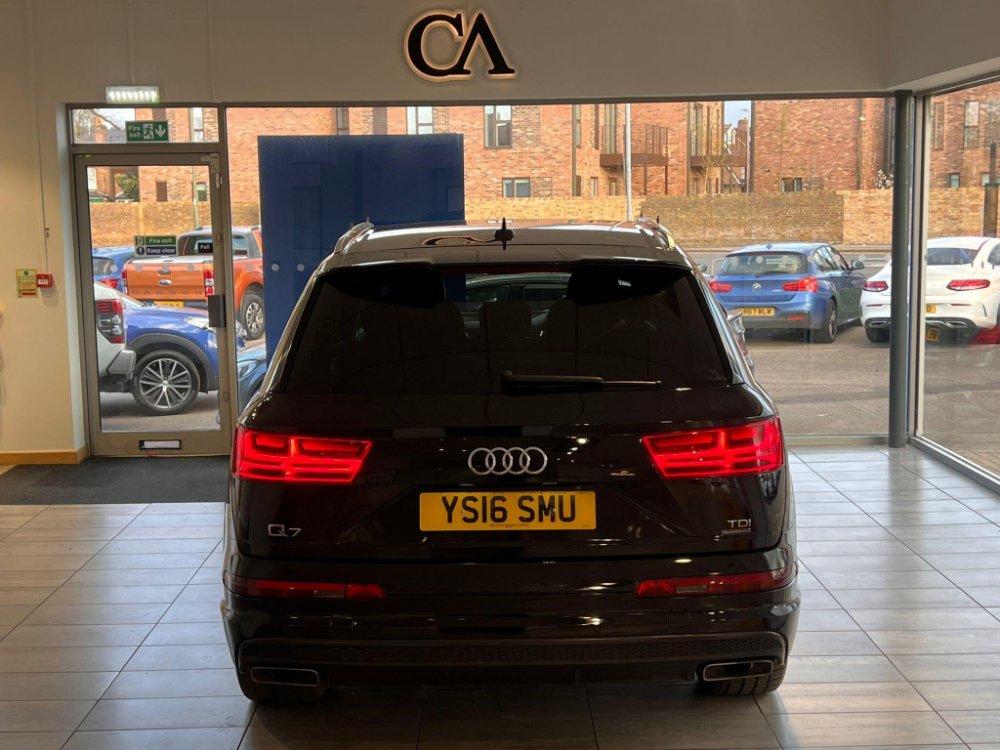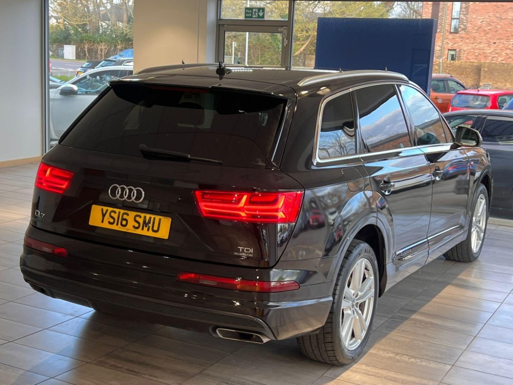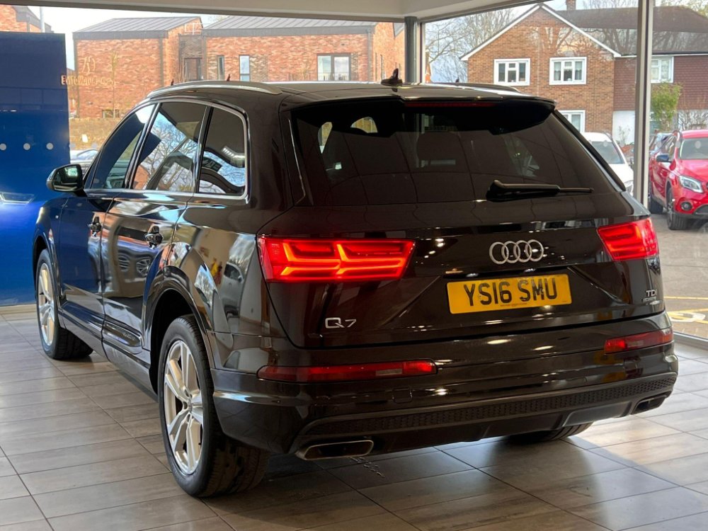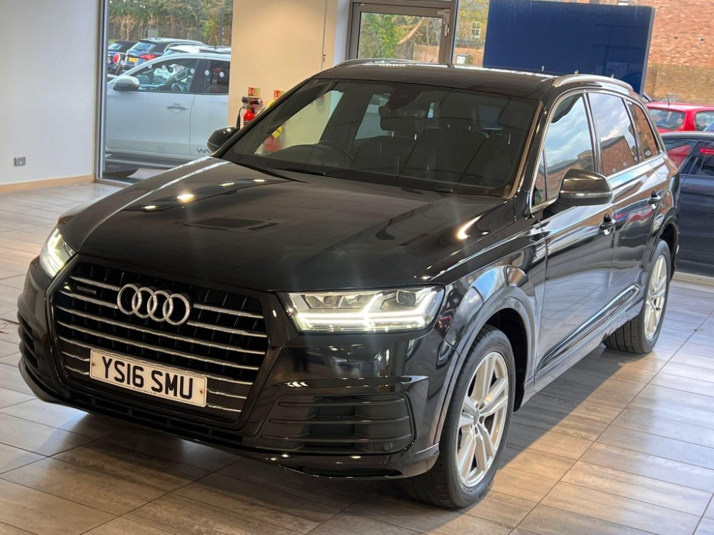 This 2016 Audi Q7 TDI V6 S line presents an exceptional example with remarkably low mileage for its age, having covered just 86,000 miles. As a Euro 6 compliant model, this four wheel drive SUV boasts a powerful 3.0 litre diesel engine and offers comfortable seating for seven occupants. Its S line trim level enhances its appeal, and it comes equipped with All Weather LED Headlights, automatic headlights, and Bluetooth connectivity for both audio streaming and mobile telephone use. Manoeuvring is made easier with Acoustic and Visual Parking System sensors at the front, and it has a substantial towing weight of 2800 kg.
