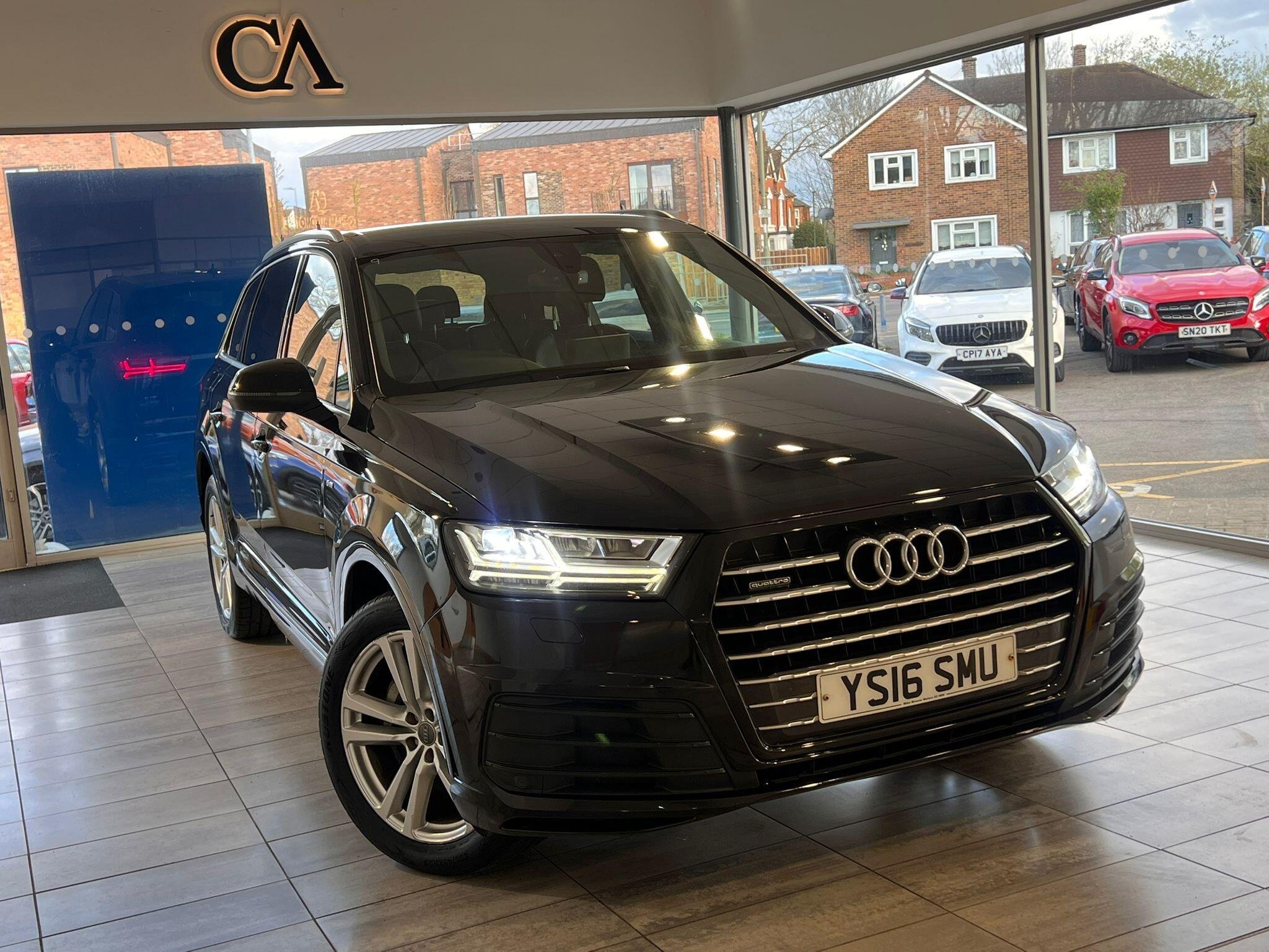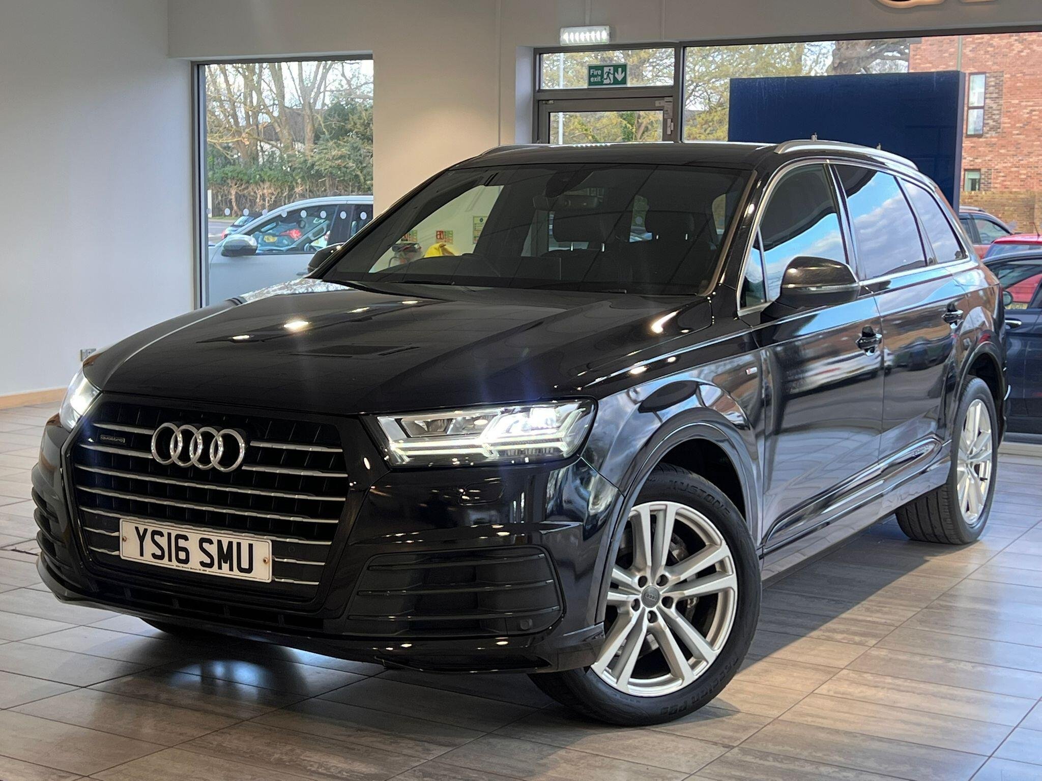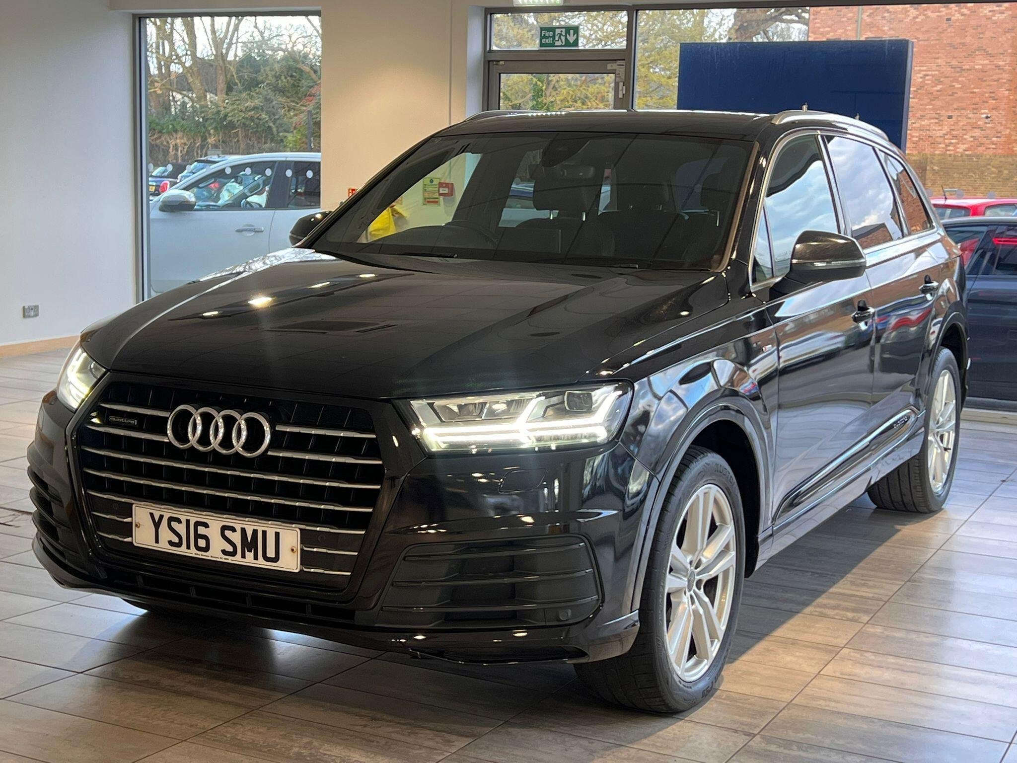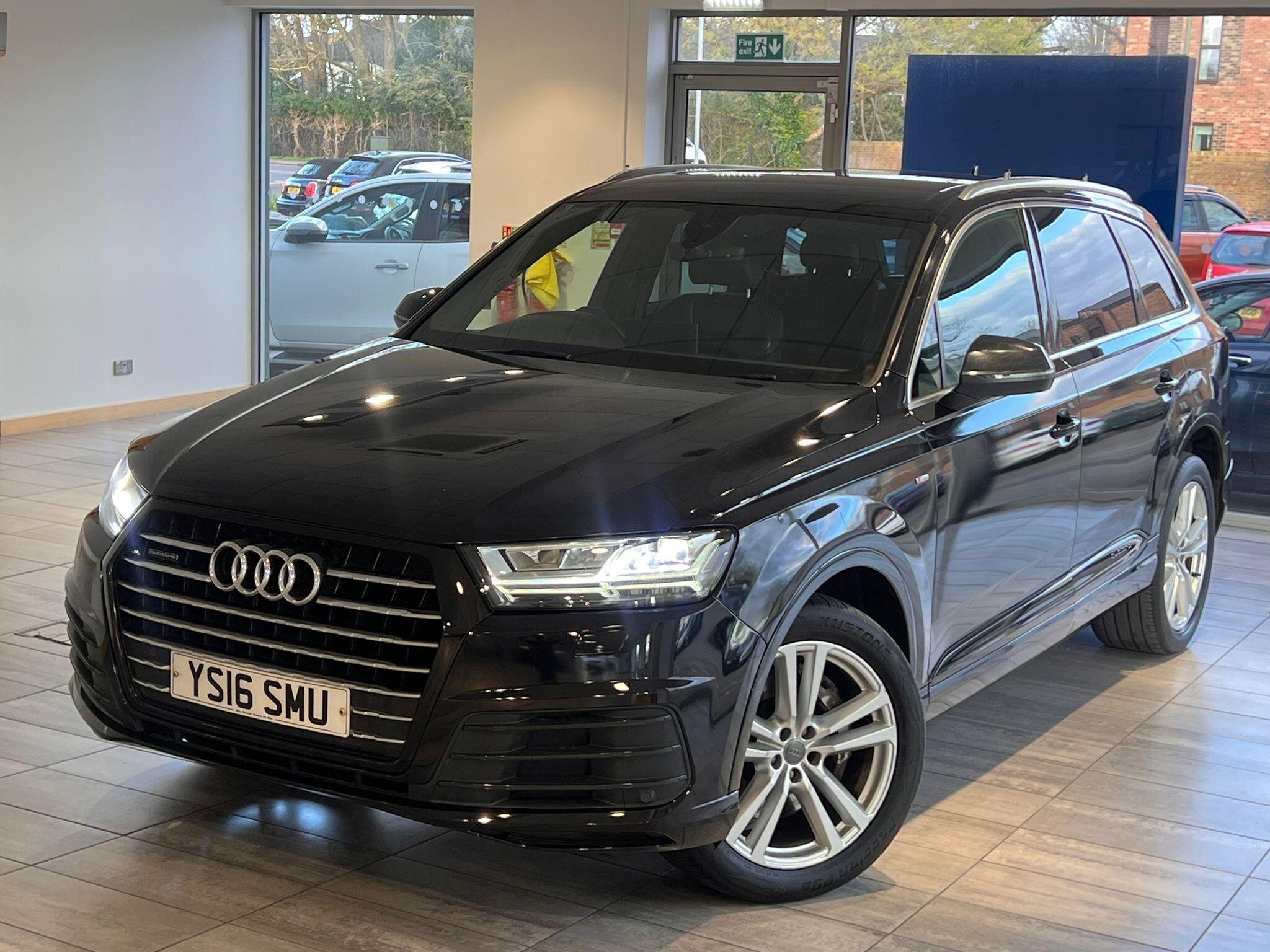 This 2016 Audi Q7 TDI V6 S line presents an exceptional example with remarkably low mileage for its age, having covered just 86,000 miles. As a Euro 6 compliant model, this four wheel drive SUV boasts a powerful 3.0 litre diesel engine and offers comfortable seating for seven occupants. Its S line trim level enhances its appeal, and it comes equipped with All Weather LED Headlights, automatic headlights, and Bluetooth connectivity for both audio streaming and mobile telephone use. Manoeuvring is made easier with Acoustic and Visual Parking System sensors at the front, and it has a substantial towing weight of 2800 kg.