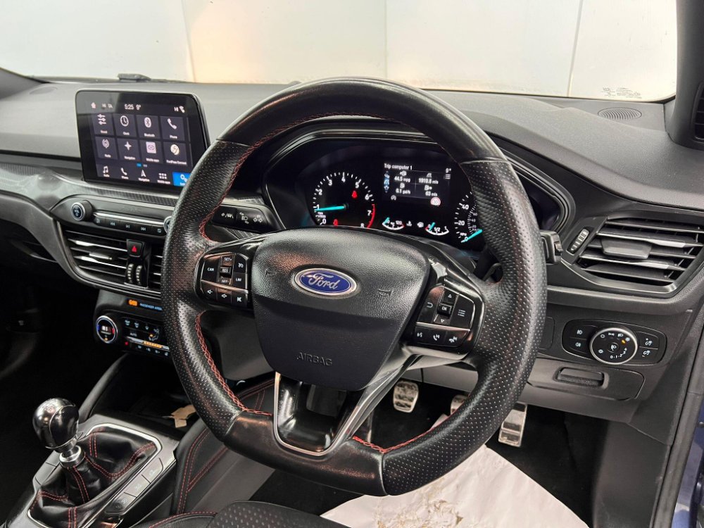 This 2019 Ford Focus T ST-Line X offers a compelling blend of sporty design and advanced technology. Powered by an efficient 1.0L Euro 6 petrol engine, this model boasts a responsive 0-62mph time of just 10.0 seconds. Inside, you'll find the intuitive Ford SYNC3 DAB Navigation System, complete with Android Auto and Apple CarPlay for seamless smartphone integration, alongside Bluetooth connectivity. Comfort is further enhanced by DEATC Dual-Zone Electronic Automatic Temperature Control and heated front seats, ensuring a pleasant driving experience in any weather.