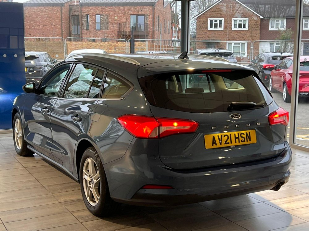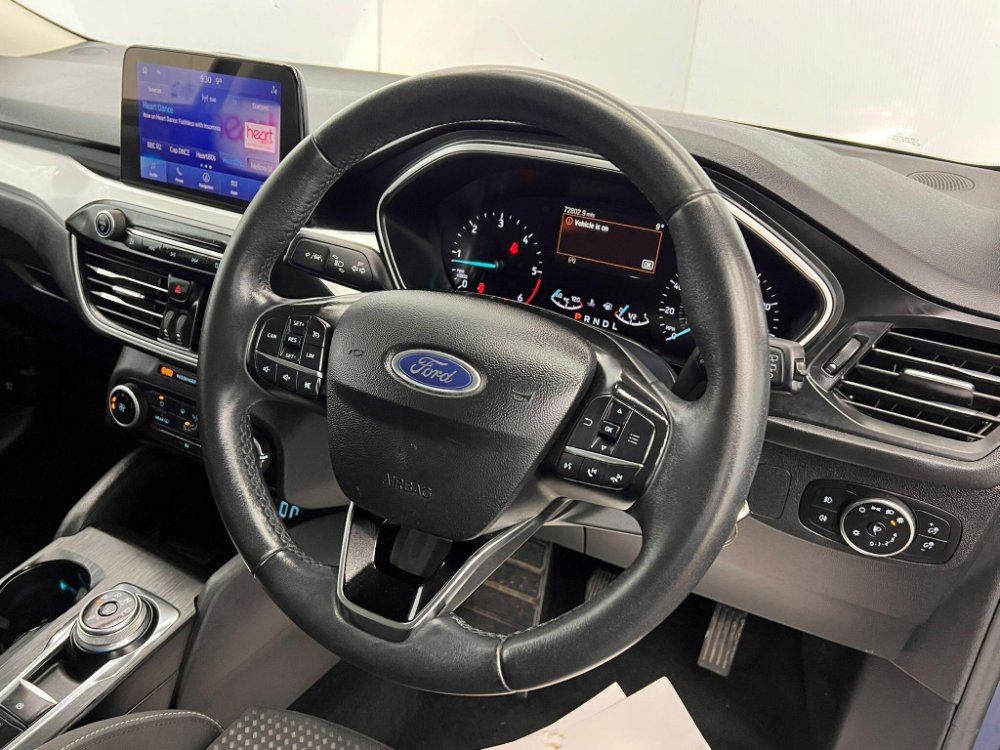 Discover this 2021 Ford Focus Zetec, a well presented example of this popular model. Powered by an efficient 1.5L Diesel engine, this Euro 6 compliant vehicle offers a compelling blend of performance and economy. Inside, you'll find a premium centre console featuring a short sliding armrest, an open cup holder, and convenient 12V front and rear power points. The E shifter rotary bezel gearshift knob adds a modern touch, while manual air conditioning ensures a comfortable cabin. Stay connected and entertained with Ford SYNC, complete with an 8in TFT touchscreen that seamlessly integrates Android Auto and Apple CarPlay. Automatic headlights further enhance convenience and safety.