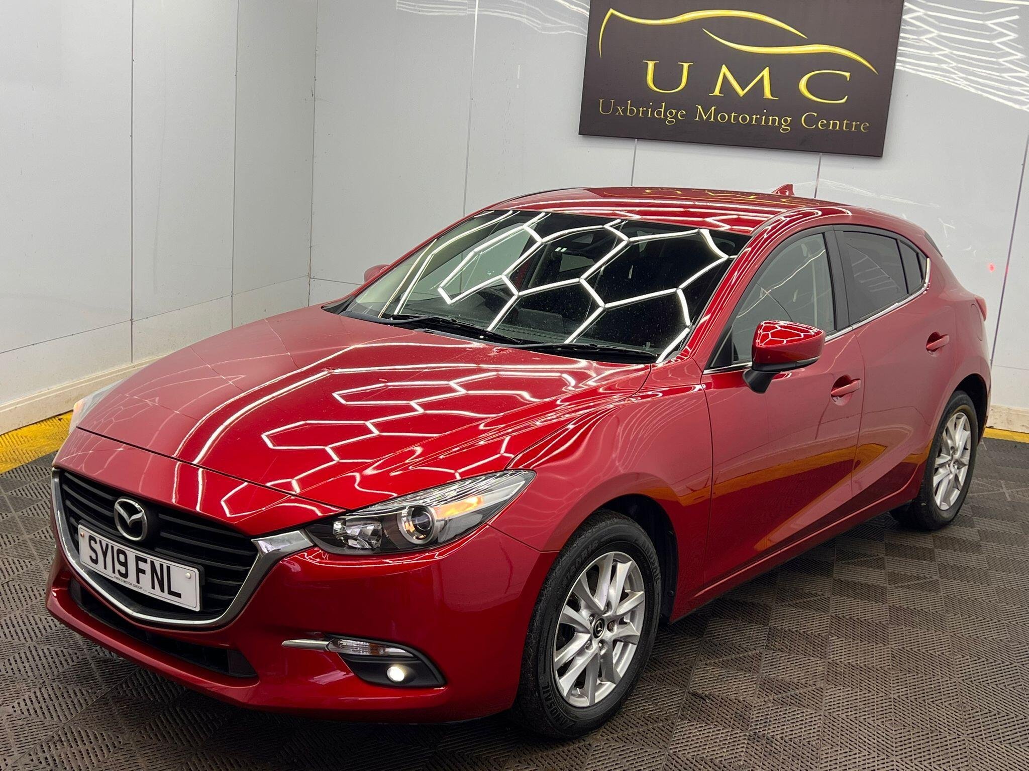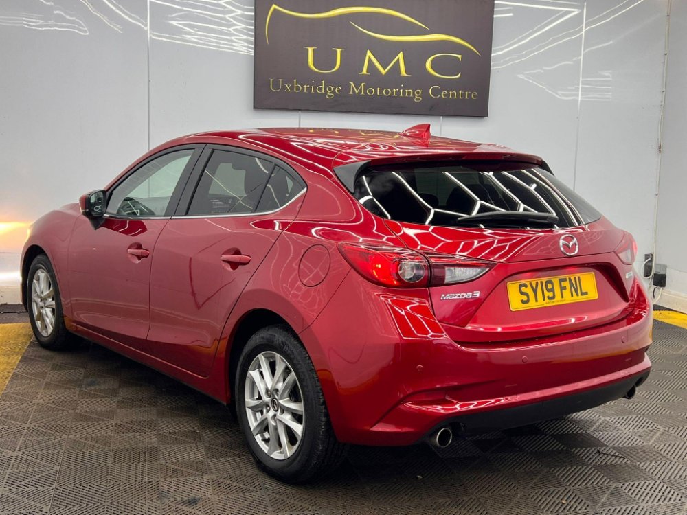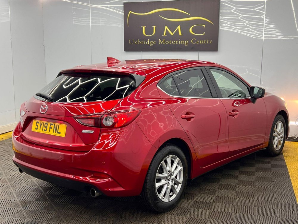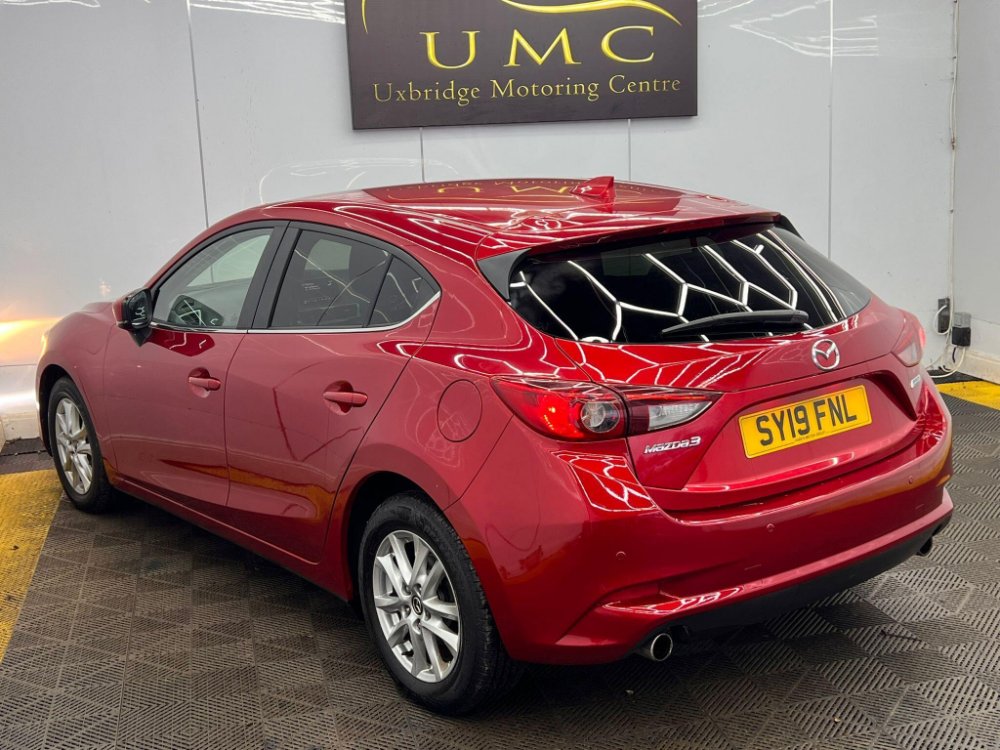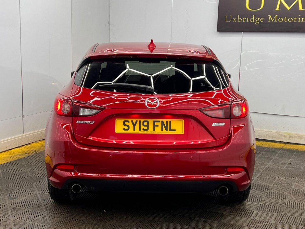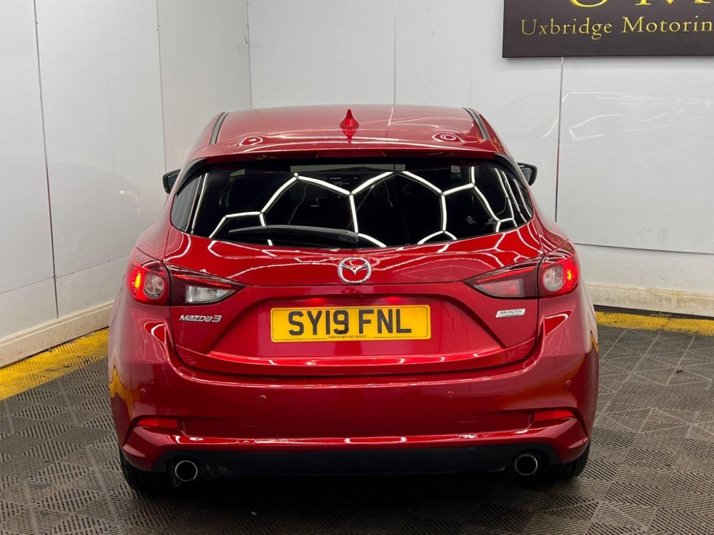 This 2019 Mazda3 SKYACTIV-G SE-L Nav offers an impressive 55 miles per gallon, making it a highly economical choice. This particular model is a 2.0 litre petrol variant, adhering to Euro 6 emissions standards. It comes equipped with desirable features such as heated front seats offering three stage settings, rear parking sensors for easier manoeuvring, and dual zone climate control air conditioning to ensure comfort for all occupants. The integrated Bluetooth system allows for seamless connectivity, while dusk sensing headlights automatically illuminate when needed, enhancing safety and convenience.